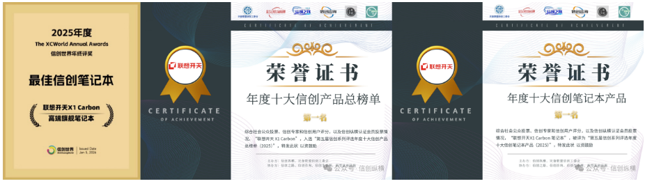 作为首款实现“CPU+GPU+NPU”国产异构算力融合的信创本,X7通过与海光的联合深度调优,首次在核心性能上比肩国际主流产品,并内嵌个人智能体,能够从容应对高负载专业应用与本地AI推理需求。这一突破性表现,使其横扫行业大奖:不仅包揽PConline“智臻信创黑马”、中关村在线“年度创新笔记本”及机锋网“最佳信创笔记本”三项殊荣,更在信创领域荣获信创世界“最佳信创AI PC”及信创纵横“年度十大信创笔记本”榜单第二名。联想开天X7的成功,标志着信创笔记本正式迈入国产PC的高性能新时代。