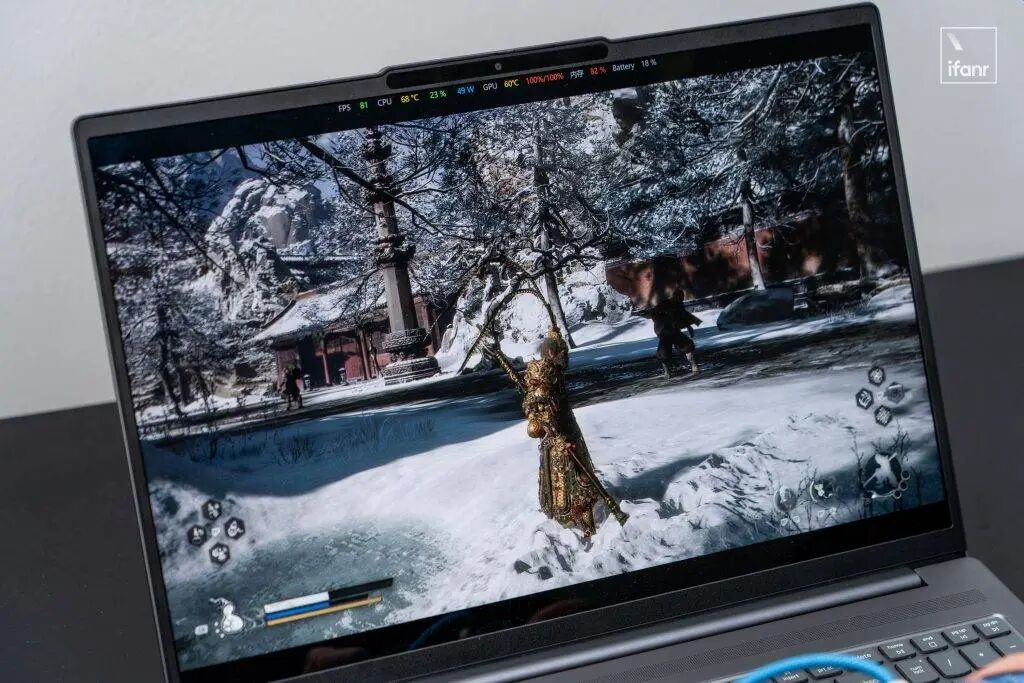 而在酷睿 Ultra X9 388H,特别是这个 12 核 Xe3 GPU 的加持下,毫不夸张的说,这台「轻薄本」几乎有着等同于 3060 显卡,或者说 PS5 主机级别的游戏能力。