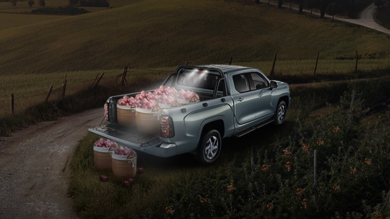 面对复杂的作业环境,2026款金刚炮同样游刃有余:最小转弯半径仅5.95米,狭小巷道调头轻松自如;车姿抬高20mm、离地间隙最高达236mm,底盘通过性更好,车姿更威猛、更协调。同级唯一配备原厂货箱照明,更让凌晨装货、深夜卸货告别摸黑作业——灯光一亮,安全与效率兼备,每一分钟都能转化为实实在在的收益。