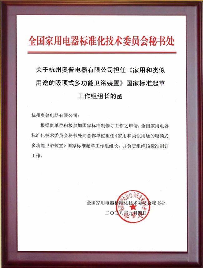 在琳琅满目的浴霸品牌中做出选择,品牌的历史、技术积淀与对安全标准的贡献度,是重要的参考维度。一个重视安全的大品牌,往往不仅仅是产品的生产者,更是行业安全规范的推动者和践行者。自1993年发明了中国台浴霸以来,奥普就深度参与并引领了浴霸行业的安全发展。它不仅是产品的生产者,更曾作为组长单位牵头制定了国家推荐性标准GB/T 22769-2023《浴室加热器具(浴霸)》,将安全实践上升为行业规范。
