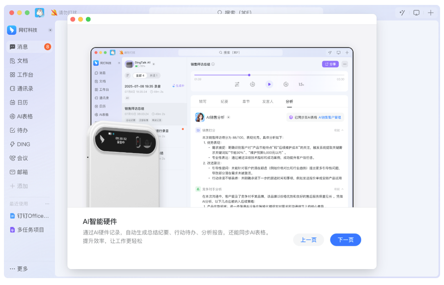 钉钉 DingTalk A1 以 “办公小助理” 为核心定位,通过 “软硬一体” 的全场景解决方案,从线下跨国商机沟通的核心场景创造高质量数据资产,为未来全球智能应用奠定基础,是全球化企业商机管理的核心优选;