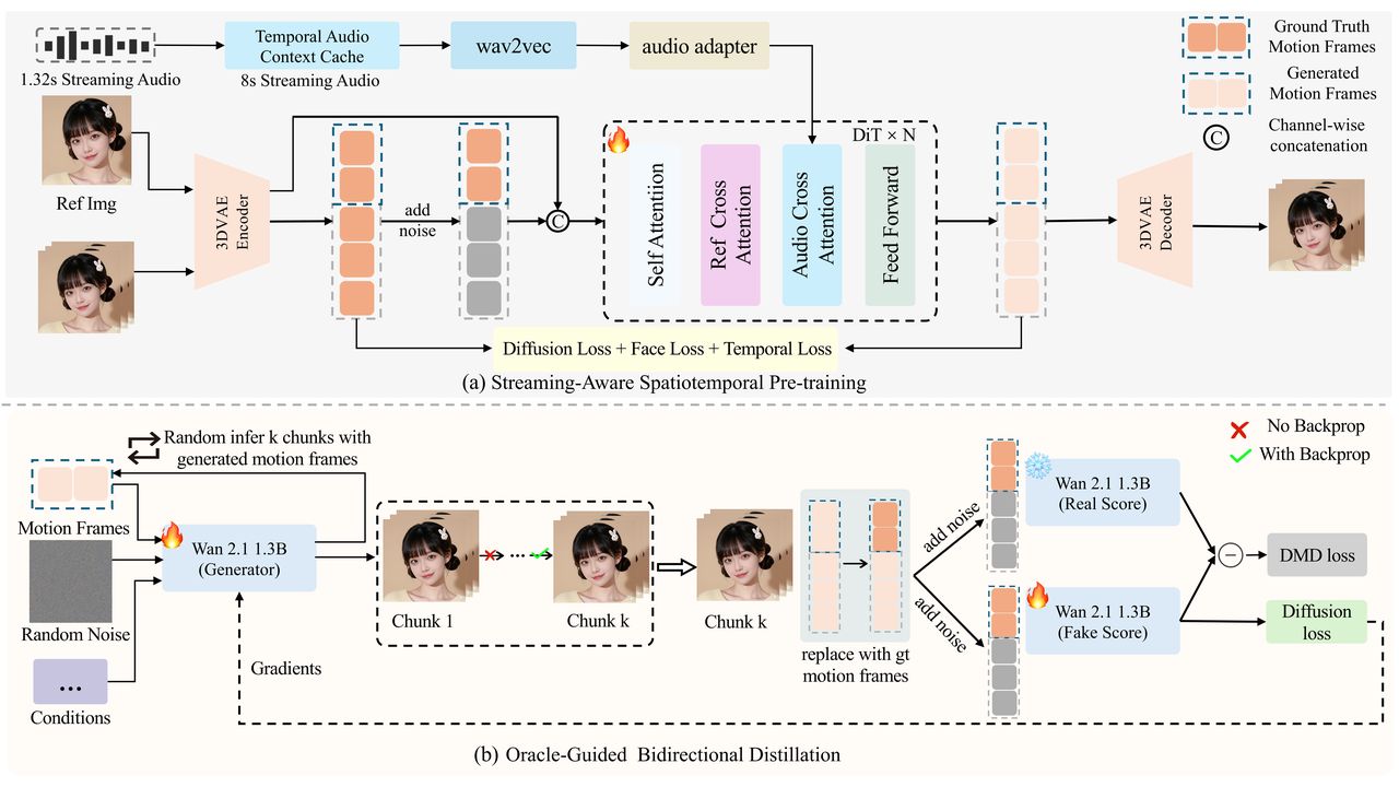 长视频生成的“身份漂移”一直是行业痛点。SoulX-FlashHead引入了“上帝视角”教师模型,利用 Ground Truth 作为先知锚点进行强约束。