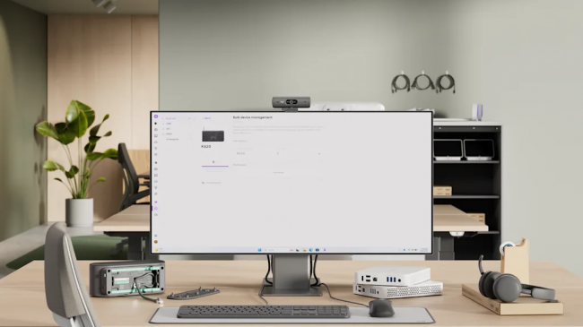 产品的部署过程高效便捷,可通过USB快速设置视频,或搭配可选的 Rally AI Camera Extension Kit,使用单根网线完成部署。设备可与会议音频系统(如 Rally Plus)或专业音频系统集成。同时,设备支持通过 Wi-Fi或以太网接入 Logitech Sync 平台,实现远程部署、固件更新与故障排查。