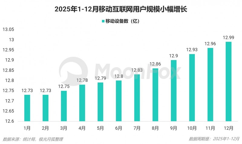2025年四季度,社交网络用户设备规模达到13.25亿,稳稳占据移动互联网用户覆盖首位。