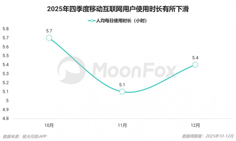 在使用时长方面,四季度相比暑期出现下滑。