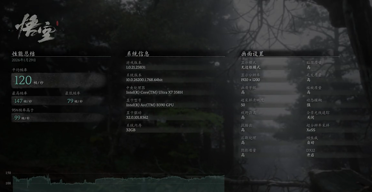 其一,凭借锐炫B390核显与XeSS3技术,实现了轻薄本游戏体验的质的飞跃,6676分的3DMark显卡分数与120帧的3A游戏表现,使其具备了替代入门级游戏本的潜力;