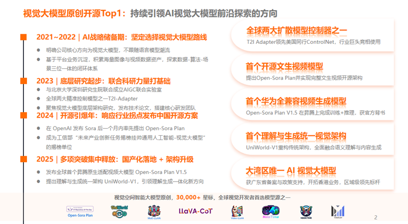 同时,公司坚持“国产模型+国产算力”路线,与华为昇腾深度合作,是昇腾910C芯片全球首个大规模用户,并打造了行业首个100%基于昇腾架构的视觉生成模型Open-Sora-Plan V1.5。