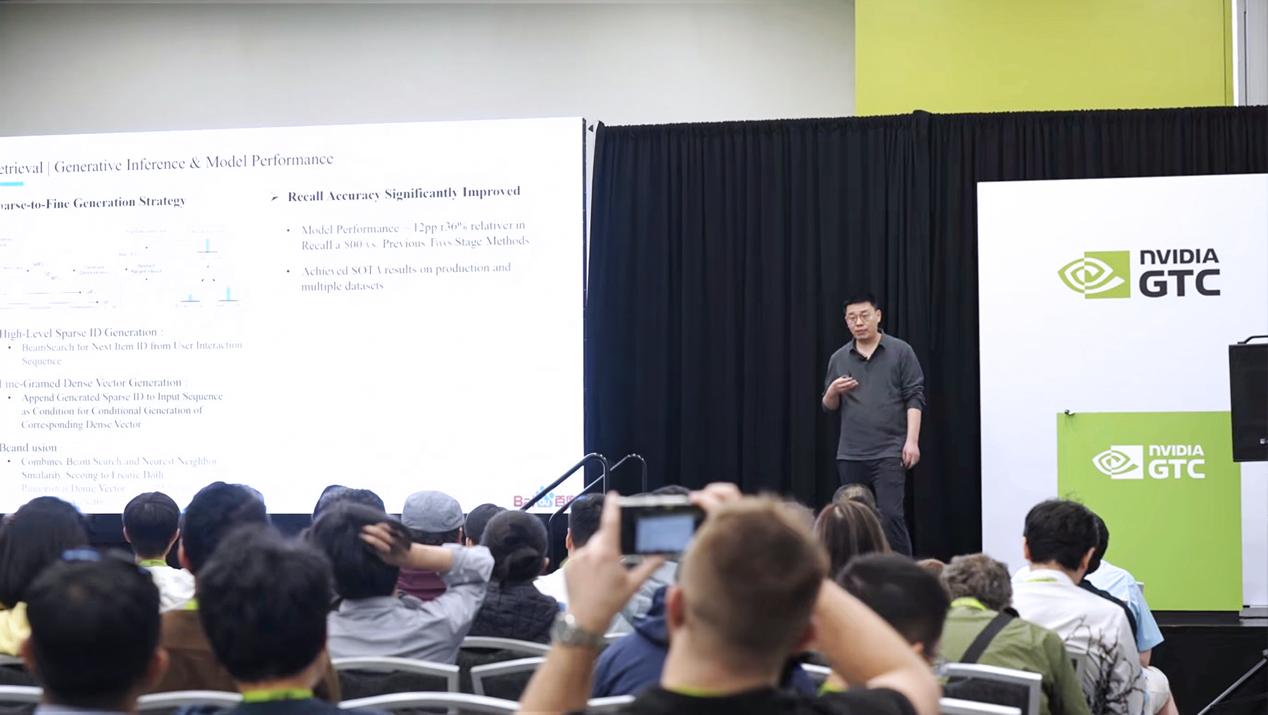 卓越的技术离不开前瞻性架构体系的引领和支撑,此次会议,同样来自于百度商业研发团队的杰出架构师焦学武受邀出席 “基于GPU优化的检索与训练,构建工业级生成式推荐系统” 核心分论坛,与Meta、快手等国内外优秀技术团队同台,向全球同行分享了首创的两大核心技术架构,全面解决生成式推荐精度不足、算力成本高、推理时延大等世界性难题,同时具备极强的通用性和扩展性,应用广度持续拓宽,促进商业技术在工业级场景的规模化落地实践与成果。