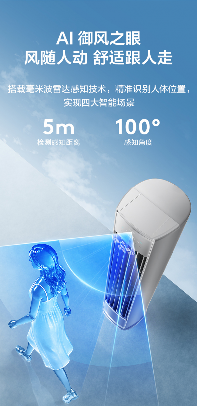 传统空调的送风逻辑往往是机械的、单向的:设定温度后朝着一个方向猛吹,导致的结果往往是“近的太冷,远的太热”。