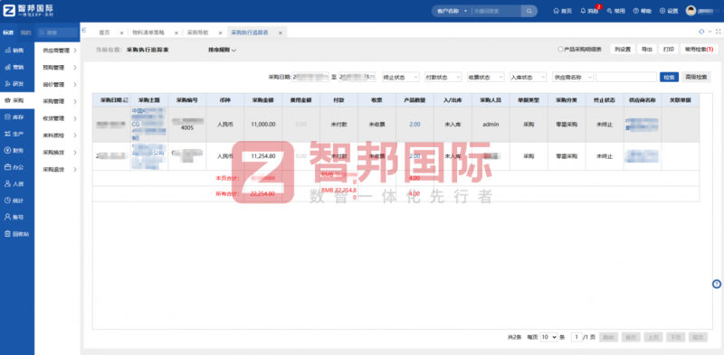 采购与供应链管理环节,智邦国际一体化ERP系统聚焦电子行业采购繁、交期长、库存管控难的痛点,实现了采购全流程的智能化、精细化管理。系统支持供应商的集中管控,可通过多维度分析供应商供货能力,帮助企业科学评估供应商资质,保障供应链安全稳定。系统还支持采购流程的全流程追溯,从询价、下单、到货到入库,每一个环节都有详细记录,可实时查看采购进度,对采购交货情况进行分类显示,便于企业及时调整采购策略,保障采购交期。同时,系统打通了采购与库存、生产等环节的数据联动,采购入库数据自动同步至库存管理模块,生产领料数据实时反馈至采购模块,实现供应链各环节的协同高效。