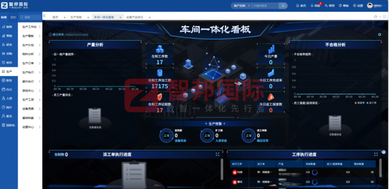 生产管理环节,智邦国际一体化ERP系统针对电子行业自制委外并行、生产流程复杂、进度难以跟踪的痛点,构建了全流程可视化的生产管理体系,实现生产过程的精细化、智能化管控。系统支持多种生产模式,可灵活适配电子行业多品种、小批量、柔性化的生产需求,实现生产计划的精准制定与自动排产,合理分配生产资源,避免生产拥堵与资源浪费,提升生产效率。实时生产看板功能可直观展示生产动态,包括生产进度、物料供应、质检结果、设备运行等情况,让企业管理者实时掌握生产状态,及时发现并解决生产过程中的瓶颈问题,确保生产有序推进。