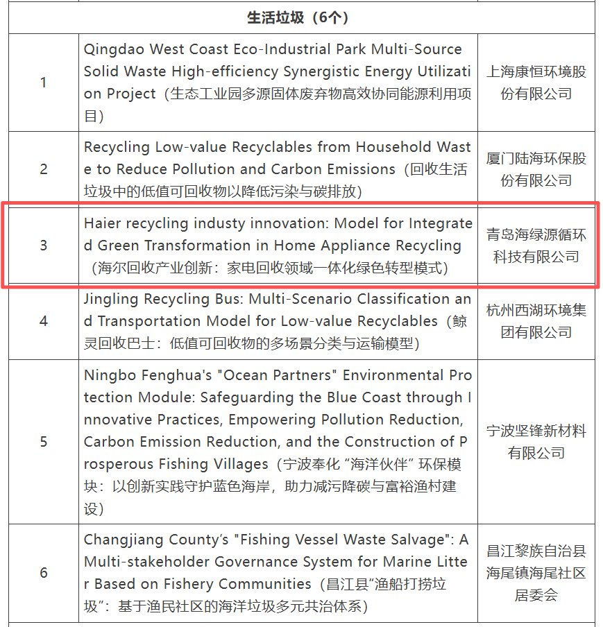 当前,我国“无废城市”建设加速推进,过程中涌现出一批典型案例。3月30日,巴塞尔公约亚太区域中心发布《2025年“无废城市”建设英文典型案例推荐名单》,这也是中国首批“无废城市”建设推荐案例。其中,海尔智家凭借“家电回收领域一体化绿色转型模式”成功上榜,成为家电行业入选企业。