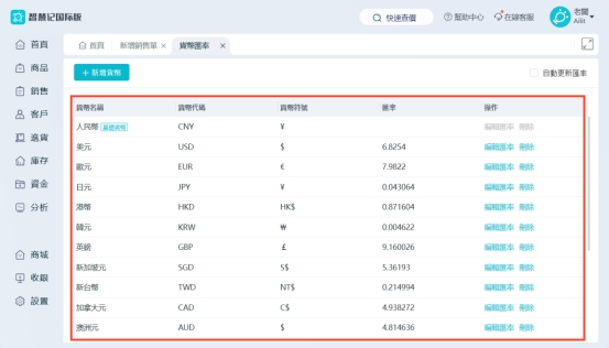支持全球154种币种智能换算,170+种实时汇率自动更新。收支、利润及账款自动核算,减少汇率波动带来的误差。