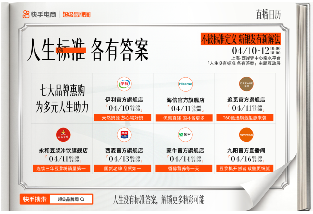 4月10日至4月16日,上快手搜索【超级品牌周】,与七大品牌共启这场答案之约,见证优质好物触达全国消费者,实现生意新跃升。