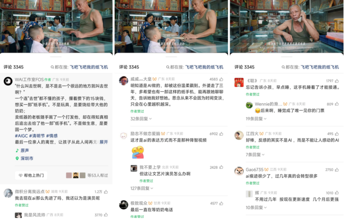 “不敢相信这是AI”“竟然不是真人演的”“被AI骗走了一车眼泪”……《纸手机》一经上线,震撼便相伴而来。从画面质感来看,演员的皮肤纹理、场景的光影层次以及市井街巷的烟火氛围,都高度逼近真人实拍的视听效果。