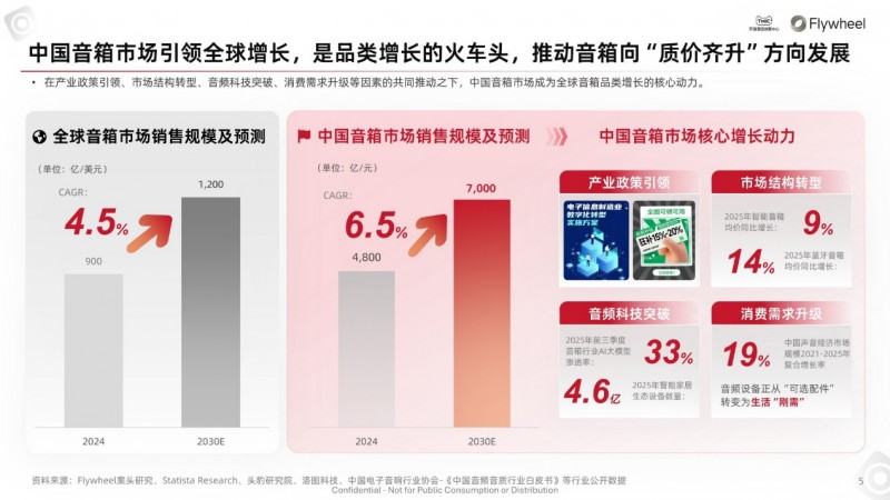 消费电子刚需属性持续释放,音频家居细分赛道增长动能持续凸显。近日,TMIC天猫新品创新中心联合Flywheel飞未发布《2026天猫音箱音响行业白皮书》(以下简称白皮书),全景复盘全球音箱产业迭代脉络,量化研判中外市场差异化增长空间,为头部音频品牌产能调配、渠道布局、全球化战略落地提供权威数据参照。白皮书同步锚定核心趋势:全民听觉体验升级刚需叠加智能人居家装普及,持续倒逼音箱产业技术迭代、场景扩容、价值升级,行业告别单一硬件比价内卷,转向技术创新、情绪适配、家居融合多维提质发展新阶段。