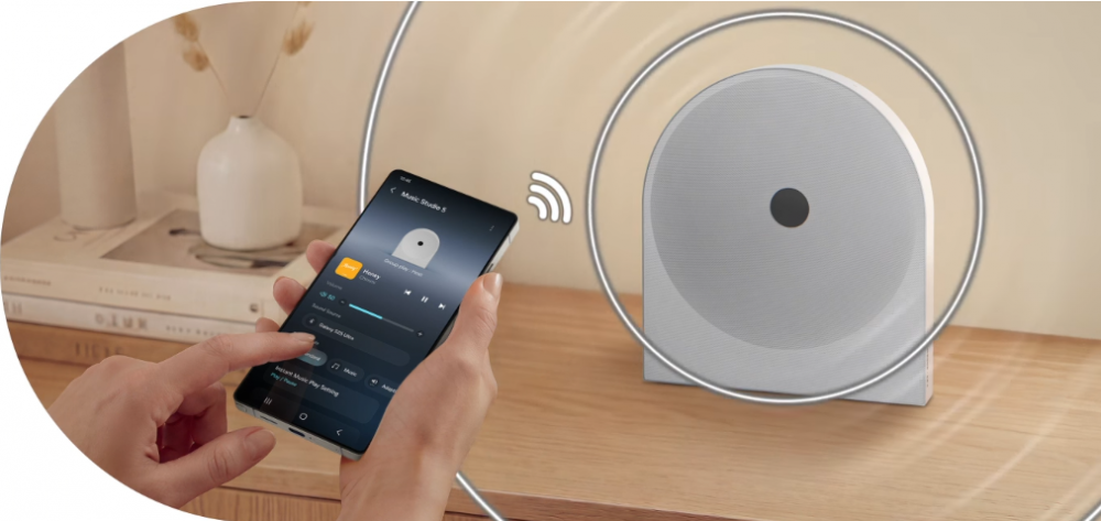 在“客厅去中心化”的家居美学趋势下,消费者还追求音响设备与家居风格的融合度。三星Music Studio画境艺术音响7系由国际知名设计师埃尔文·布鲁克匠心打造的圆点设计,置于扬声器发声中心,既是声音流动的交汇点,更是美学标识,从而将科技与艺术深度共生,让音乐以可视化的方式融入空间,消费者在享受听觉盛宴的同时,也能收获视觉上的舒适与愉悦。