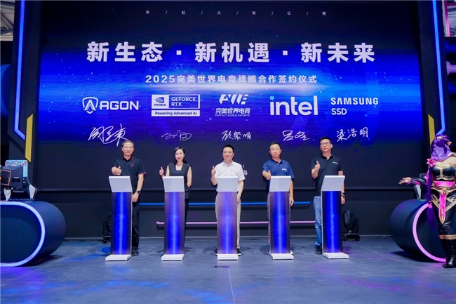 8月1日,在第二十二届中国国际数码互动娱乐展览会(简称ChinaJoy)开幕同日,完美世界在上海新国际博览中心完美世界展台举行2025完美世界电竞战略合作签约仪式。完美世界携手四大合作伙伴,包括NVIDIA、英特尔、AGON爱攻、三星品牌存储等成立完美电竞合作伙伴联盟,共拓电竞产业生态圈。