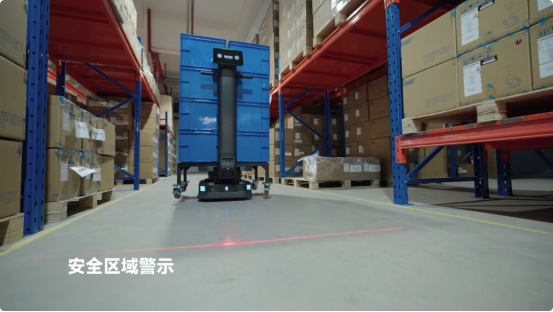 同时,针对工业场景常见的低矮障碍物,T600系列产品能够自主识别并灵活避障,充分保障作业安全。此外,标准版还能够在机器前方投射警示灯,提示行驶区域,构建起安全的人机协作作业体系。