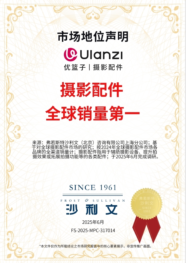 近日,唯迹科技创始人邹青分享了企业十年成长背后的故事与成果。公司先后孵化并运营优篮子Ulanzi、FALCAM小隼两大品牌,又于 2025 年 9 月成功收购美国知名摄影配件品牌 JOBY,构建起覆盖不同定位的多品牌矩阵。其中,核心品牌优篮子Ulanzi 表现尤为突出,在 2025 年 6 月获得Frost & Sullivan认证的 “全球摄影配件销量排前(2024)” 的荣誉。如今,唯迹科技已稳居全球摄影配件行业领军地位。