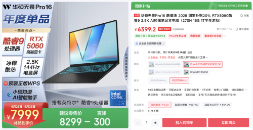 华硕无畏Pro16 2025通过高素质好屏、高性能表现以及AI助手三维协同,以出色的产品力覆盖年轻人多场景需求,无论是学生党入手第一台笔电,还是职场人选购办公主力本、创作者换新提升生产力,都可以考虑入手这款大屏全能AI轻薄本。感兴趣的小伙伴们可以上京东搜索#华硕无畏Pro16 2025#了解产品详情,当前购机直降300元,部分地区可叠加至高20%国家补贴,到手价6399.2元(国补地区可咨询客服了解)。