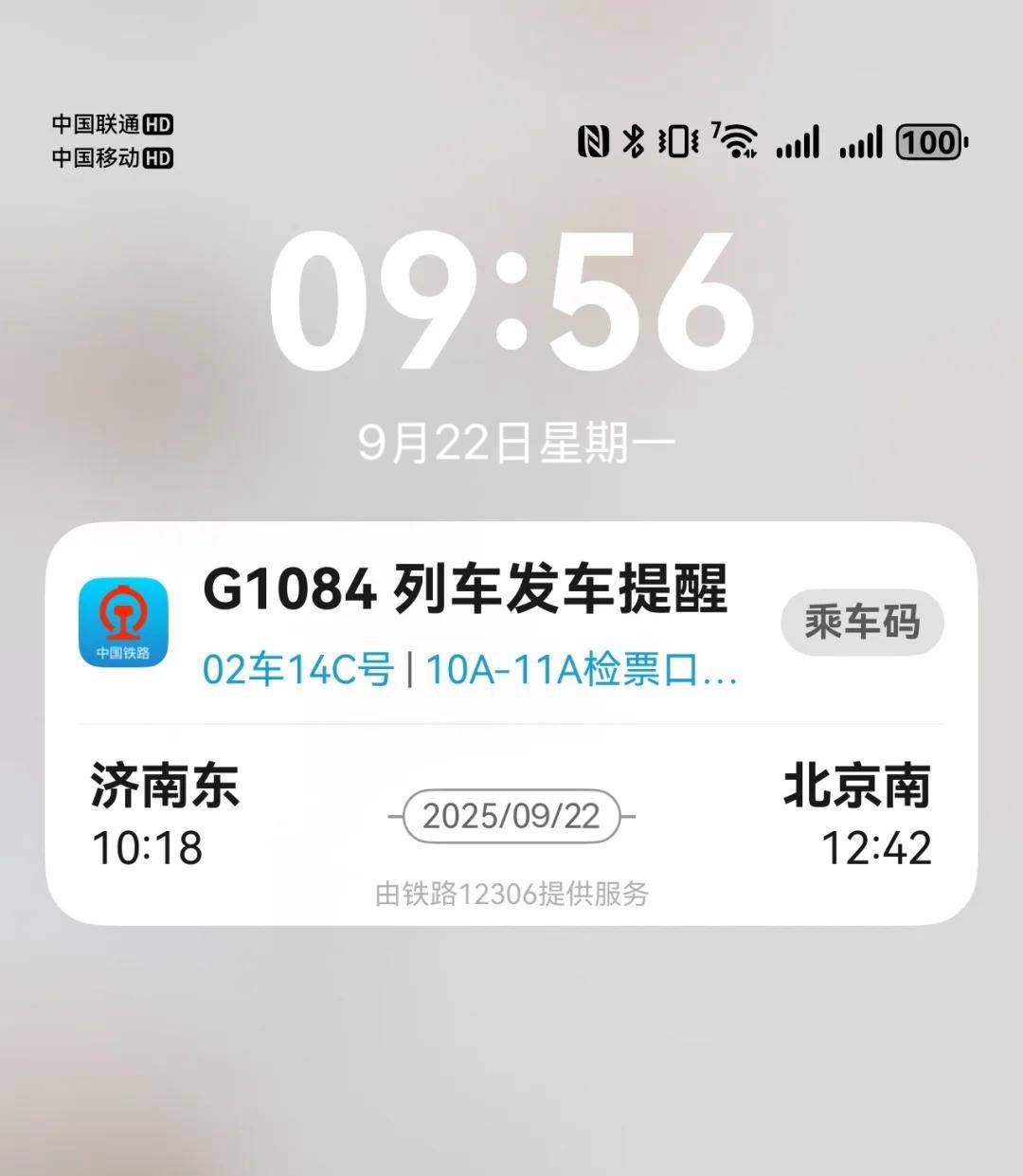 如果你选择的是高铁出行,它的实况窗功能也非常好用。以前坐高铁时总要翻出12306核对车厢座位,现在锁屏上能直接显示班次、车厢和座位,过闸机时瞥一眼就直奔车厢和座位,特别从容。鸿蒙5的实况窗不仅展示发车/到达时间,更将检票口、车厢座位号等高频信息常驻锁屏,即使手机熄屏也能快速查看,拿着行李也不用解锁手机查找应用,进站上车更加高效便捷。