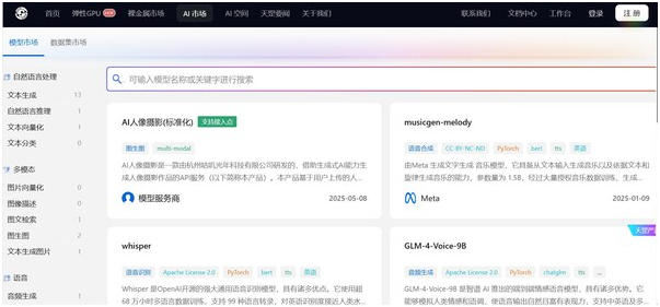 图2 天罡智算平台AI模型市场汇聚各类模型应用