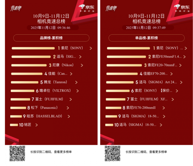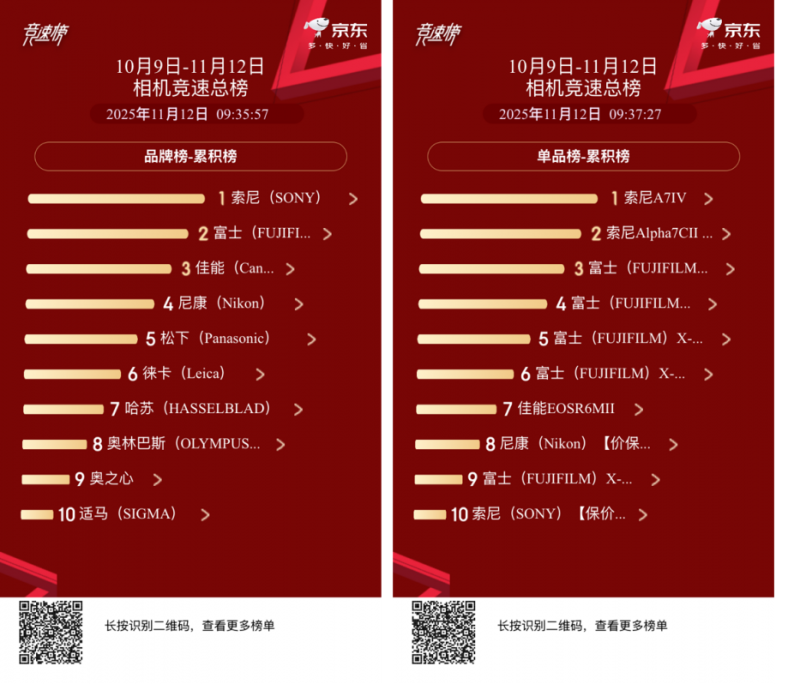 此次 “双登顶” 不仅印证了索尼影像的持续竞争力与技术领先优势,更直观反映出广大消费者与创作者对其品牌价值、产品品质及技术创新的高度认可。从 618 到双 11,索尼影像全年两大促持续领跑,稳稳奠定了 2025 年在京东数码影像领域的领先地位。