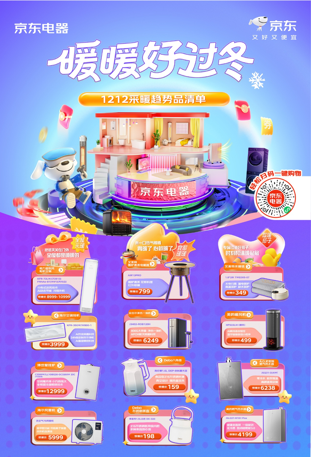 在这场“保暖战役”中,各大家电品牌围绕智能化、集成化展开技术竞赛:美的薄壁暖风机以超薄机身、强劲暖流与智能联动功能,成为小空间快速取暖首选,京东门店活动价499元起;海尔空调挂机凭借快速制热技术与超静音运行,打造卧室温暖空间,京东门店活动价3999元; 艾美特电暖桌集远红外恒温取暖与电陶炉烹煮于一体,一物两用,可以安全无烟地享受“围炉煮茶”的冬日雅趣,京东门店活动价799起;博世壁挂炉,国家一级能效与约108%的超高热效率,不仅是壁挂炉,更是搭载“全预混冷凝”与“全域自适应”尖端科技的家庭热能中枢。它以小巧机身实现强大效能,是小户型与精致生活的理想搭配,京东门店活动价12999元起。消费者可前往京东MALL、京东电器城市旗舰店,亲身感受这些温暖科技带来的过冬新方式。