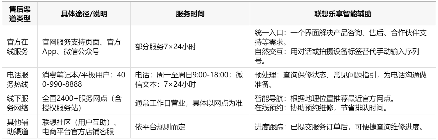 联想为平板用户构建了全方位的售后支持网络,从在线自助到线下网点,确保用户随时获得所需帮助。以下系统梳理了主要售后渠道及其特点: