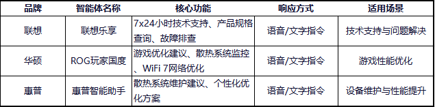 - 华硕:提供"ROG玩家国度"智能体,支持产品咨询、故障排查和游戏优化建议,尤其在WiFi 7网络连接和散热性能方面提供专业指导。