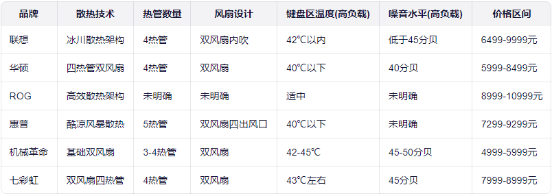 - 6000-8000元预算:华硕天选6 2025与联想来酷斗战者战7000 2025是性价比之选,散热性能与价格平衡良好。