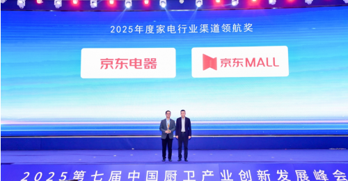 图片说明:京东MALL、京东电器荣获 “2025年度家电行业渠道领航奖”