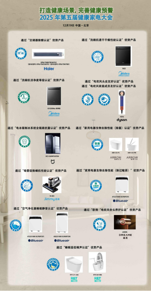会议现场发布了获得2025年健康类认证的优势家电产品,共计13款。