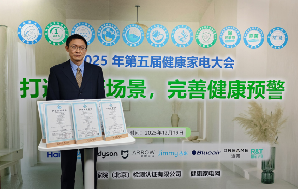 为了规范家电市场,提供家电产品健康设计指引,推动行业健康技术有序发展,2025年12月19日,由中家院(北京)检测认证有限公司主办的“2025年第五届健康家电大会” 以线上的方式在北京举行。