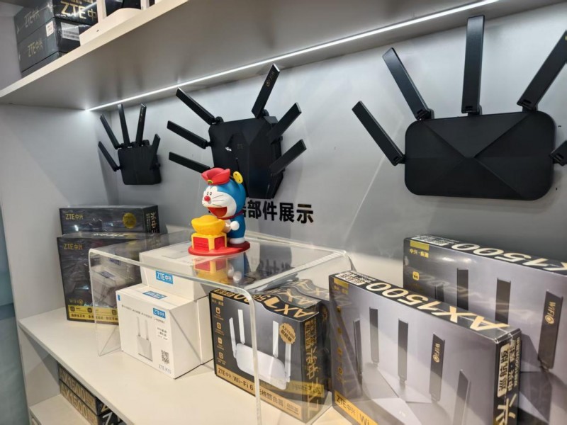 中兴智慧家庭全系产品皆亮相门店现场,既包含面向家庭用户的Wi-Fi 6、WiFi 7路由器、智能摄像头、智能灯等家用连接类产品,也涵盖适配中小企业的传统AC+AP、SMB网络等一体化解决方案,更增加了FTTR-B融合全光网络方案成为核心展示亮点。