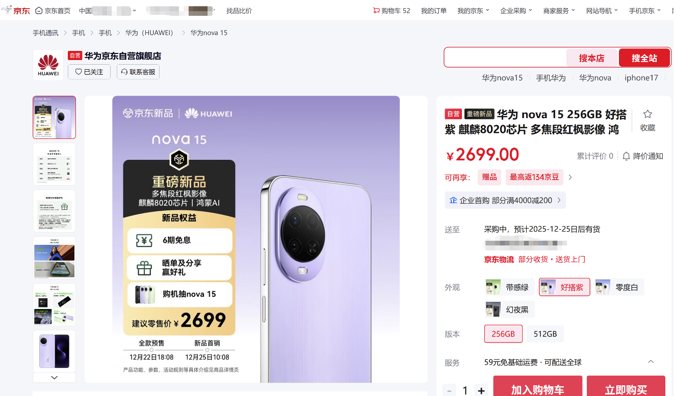 2699元起!来京东参与华为 nova 15系列预售享6期免息