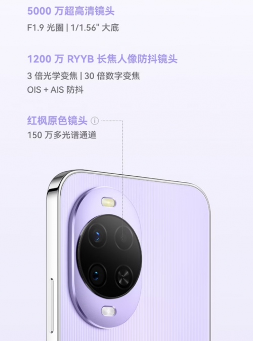 华为 nova 15 Pro后置5000万RYYB超感知防抖镜头、1200万RYYB长焦人像防抖镜头、1300万RYYB超广角微距镜头、红枫原色镜头,前置5000万超聚光人像镜头、红枫原色镜头;带来红枫自拍,还原自然肤色、清透妆容;后置全焦段红枫影像,带来0.5x广角人像、1x风光人像、2x黄金人像、3x长焦人像。