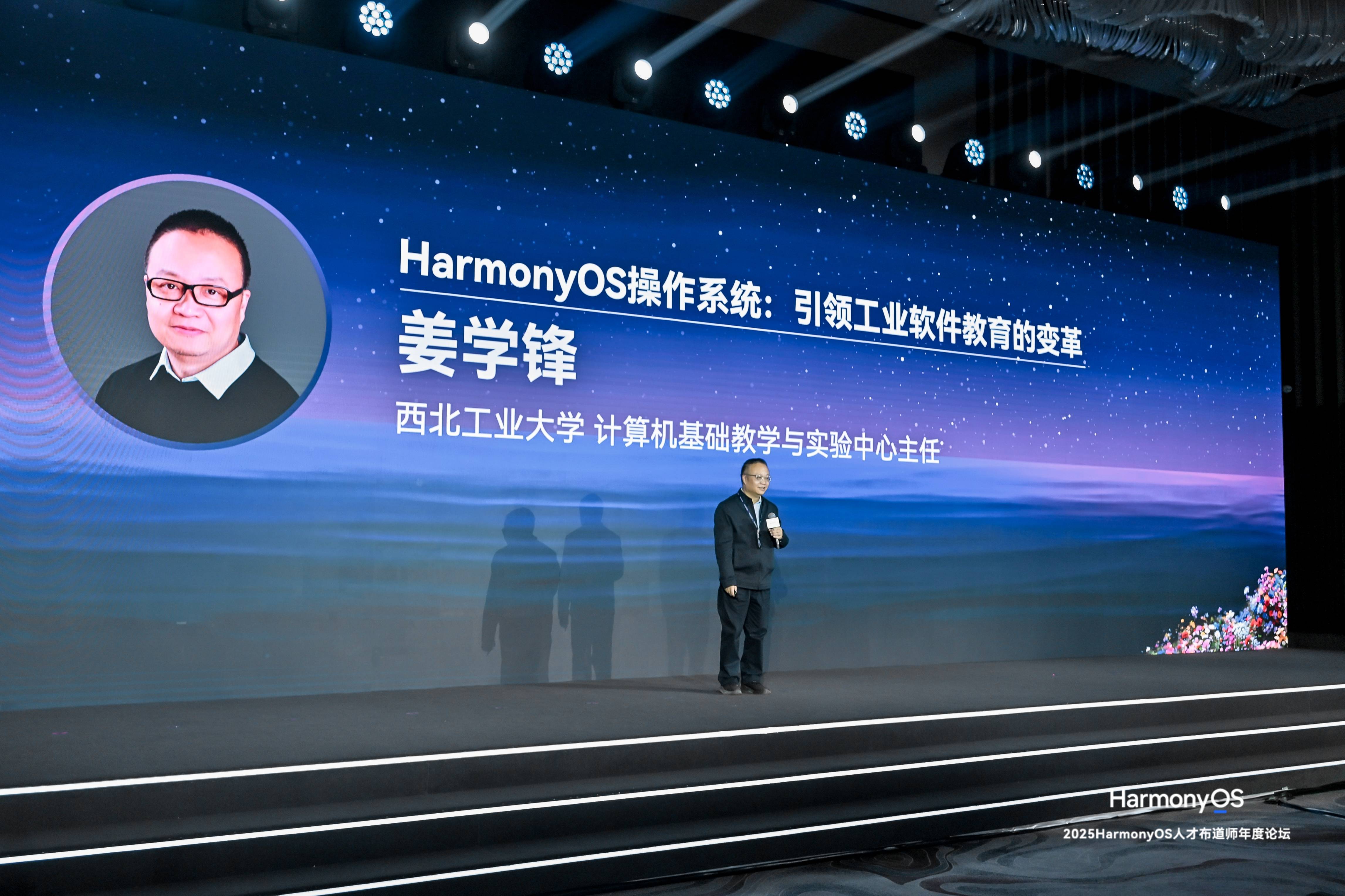 西北工业大学计算机基础教学与实验中心主任姜学锋分享了该校将鸿蒙融入国家工业软件人才培养体系的实践。姜学锋表示,基于西工大在自主可控道路上的长期积淀,HarmonyOS不仅是一个操作系统或者软件产品,更应被视为“工业产品”。西工大已建成全国首个鸿蒙电脑计算机实验室,并从2025级新生开始全面推行鸿蒙化课程教学,同时将航空工业软件进行鸿蒙化迁移。他强调,青年是决定生态未来的关键,教育界应充满自信,快速将产业界探索形成的“真知识、真问题”引入课程,构建自主知识体系,实现人才自主培养与科技自立自强。