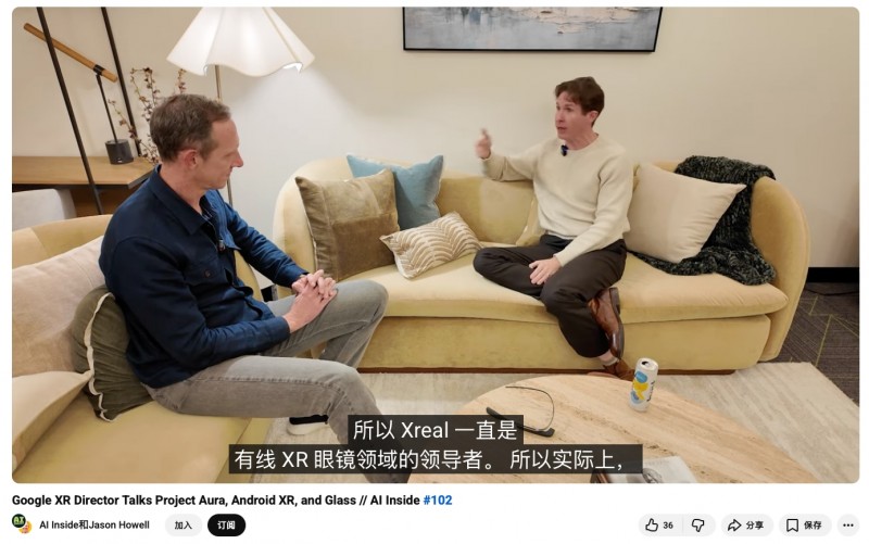 在谈及与XREAL的合作,Payne 表示,XREAL 长期处于 AR 眼镜领域的领先位置。通过 Project Aura,用户可以在眼镜形态下实现跨设备的手势操作,像使用电脑一样在多个终端之间进行控制,并直接运行 YouTube 等 Android XR 应用。他指出,Android XR 正在拓展到更多硬件形态,而 XREAL 一直被视为该领域的重要引领者,“我们对此感到非常兴奋,他们正在做一些非常酷的事情”。