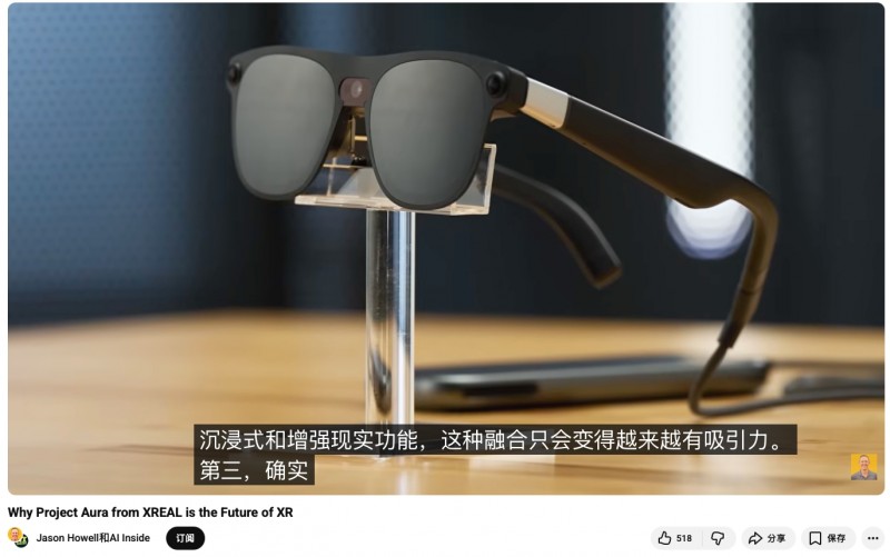 在媒体评测之外,Android 生态中的核心意见领袖也给出了高度评价。拥有超过 20 年科技媒体经验、被视为 Android 生态“教父级”人物的 Jason Howell,在其发布的深度体验视频中,将 Project Aura 称为“XR 的未来”。他指出,XR 行业长期缺少一种真正适合日常使用的“中间层形态”——既不是笨重的头显,也不只是功能受限的轻量眼镜。“Aura 向我展示了 AR 领域一直缺失的那块拼图,一种不再让人感觉像是全副武装去使用的 XR 设备。”在视频结尾,Jason Howell 明确表示,市场确实需要这种中间层的 XR 方案,而来自 XREAL 的 Project Aura,显著地填补了这一空白。