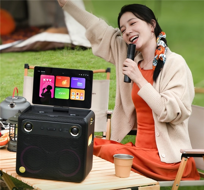 定位中高端市场的爱畅智能K歌音箱K70则在技术与功能上实现全面升级,堪称“专业级移动K歌神器”。该产品搭载进阶版AI美声算法,新增多档位音效调节模式,可精准匹配不同曲风与声线特点;10.1英寸可180度旋转智能触屏,打破了传统K歌设备的视角限制,多人聚会或户外表演时,任意角度都能清晰查看歌词与操作界面。值得一提的是,爱畅智能K歌音箱K70新增外接麦克风与乐器接口,支持多人合唱及吉他、电钢琴等乐器联动,配合300W峰值功率与全频声学单元,可覆盖100平米大空间,无论是户外露营、广场演出还是小型派对,都能打造沉浸式K歌体验。