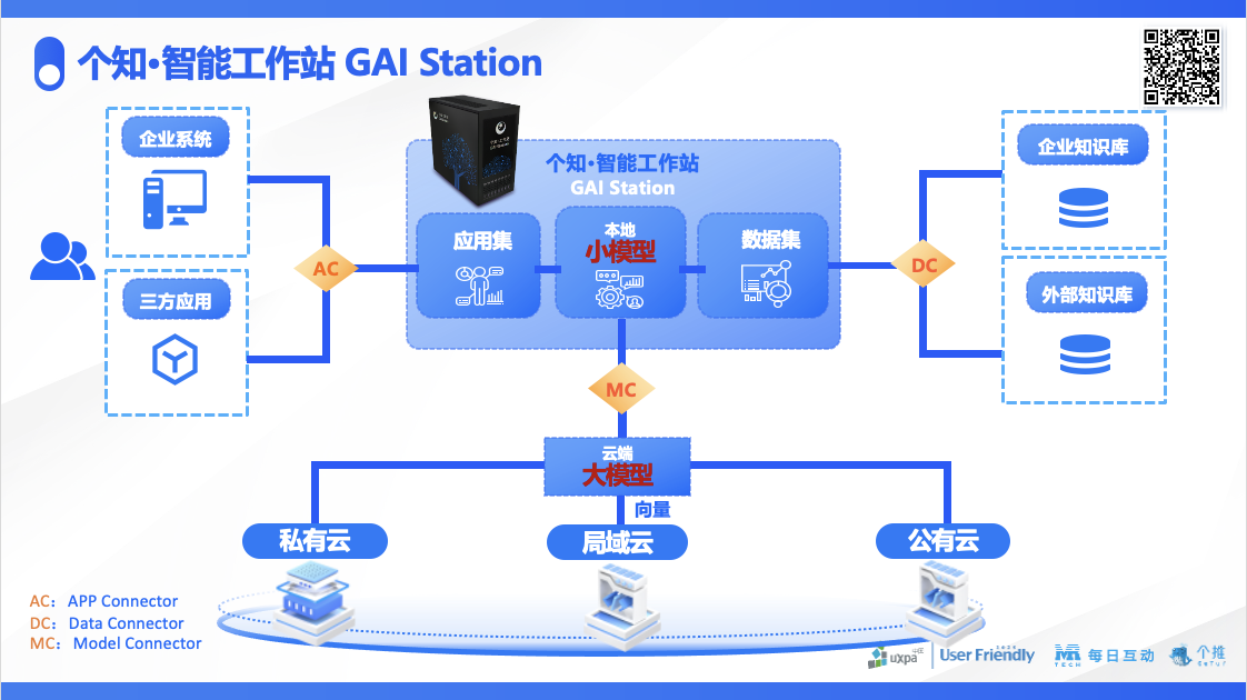 这款工作站的设计充分体现了 “感同身受”:我们不仅整合了自建与合作的多项能力,更通过本地机箱或直观管理边界,让用户感受到 “看得见的安全”—— 知识库可存储于本地,无需全部上传至外部云端,打消用户对数据外泄的顾虑。在能力配置与大模型连接上,我们并非仅提供私有或公有两种极端选择,而是在两者之间设置了可调整地带,可根据场景敏感度连接不同大模型能力,平衡安全与性价比,赋予用户更多选择权,既发挥私有云优势,又能对接公有云的强大算力。同时,工作站界面与传统操作系统使用习惯基本一致,虽为网页形式,但大幅降低了用户的使用门槛,每个图标都对应一项功能,未来也呼吁行业伙伴将更多 agent 与工作流集成进来,服务千行百业。