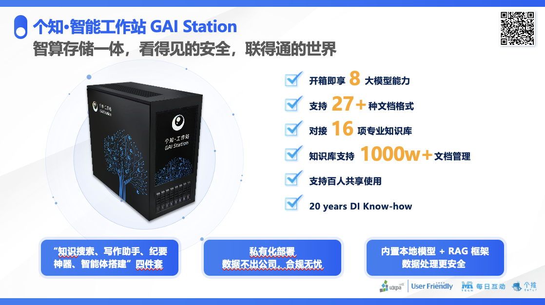 总结而言,我们的工作站通过层层递进的产品设计,为用户提供了 AI 与私有数据紧密结合的入门方式,既保障安全,又能联通世界。我们的目标是让 AI“用得起、用得起来”:“用得起” 强调成本可控、价格亲民;“用得起来” 强调价值回报与实际收益。