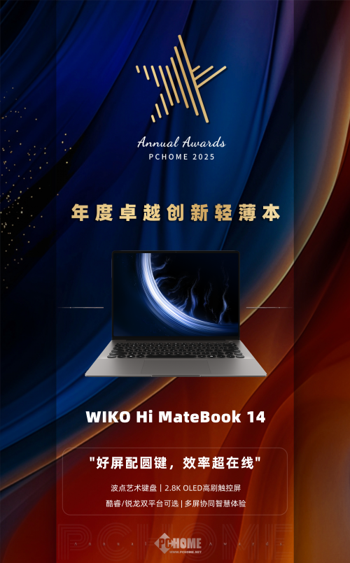 如果说独特设计让WIKO Hi MateBook 14脱颖而出,那么一套扎实且无短板的配置,则是其赢得中关村在线“年度优质轻薄本”推荐、电脑之家“年度卓越创新轻薄本”的核心原因。中关村在线颁奖理由概括得颇为全面:“旗舰级2.8K OLED高刷触控屏,配合行业独创波点艺术键盘,以及AMD锐龙7高性能芯片和强大的多屏协同及智慧体验,堪称5000元档全能轻薄本。”电脑之家在评语中强调,该产品在“屏幕、性能、散热、续航等体验上实现了无短板的全面跃升”。