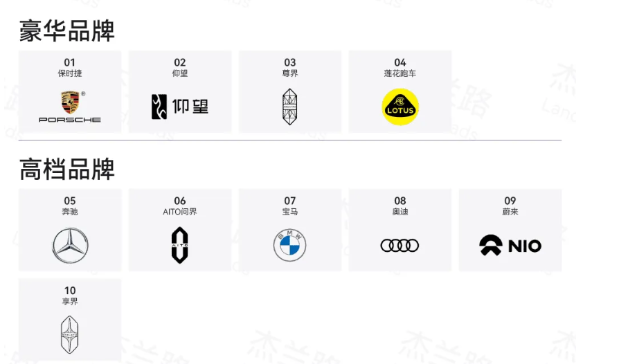 根据杰兰路报告的划分,新能源汽车品牌已形成豪华、高档、中高档、中档、经济五大稳定阵营。不同阵营面临的品牌健康度课题截然不同:经济品牌需突破知名度瓶颈,中高档品牌需解决从熟悉到青睐的转化,高档品牌需强化生态独特性,而豪华品牌的竞争,已进入“价值定义权”的争夺阶段。