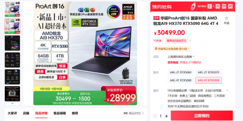 华硕ProArt创16 2025以旗舰性能的硬件堆料、强大的AI算力、专业的显示屏幕与智能化的AI体验,为专业创作从创作辅助到效率提升全方位提供助力。目前正值新年大促,购入可享受直降1500元的家补贴优惠,最终到手价仅需28499元,还有晒单返现100元E卡、晒单送触控笔以及白条6期免息等多重福利。