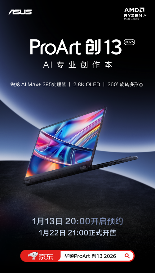 1月22日20:00,华硕ProArt 创13 2026将亮相2026全新华硕AI PC全能本新品发布会,敬请期待!