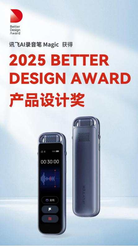 以精妙设计重塑记录体验,讯飞AI录音笔Magic获2025BDA产品设计奖
