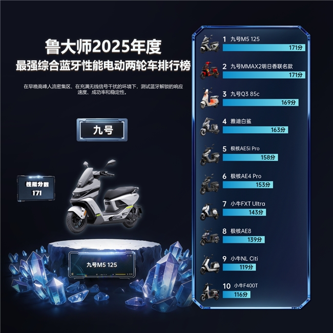 九号三冠领衔鲁大师2025年度电动两轮车榜,智能化赛道格局初显